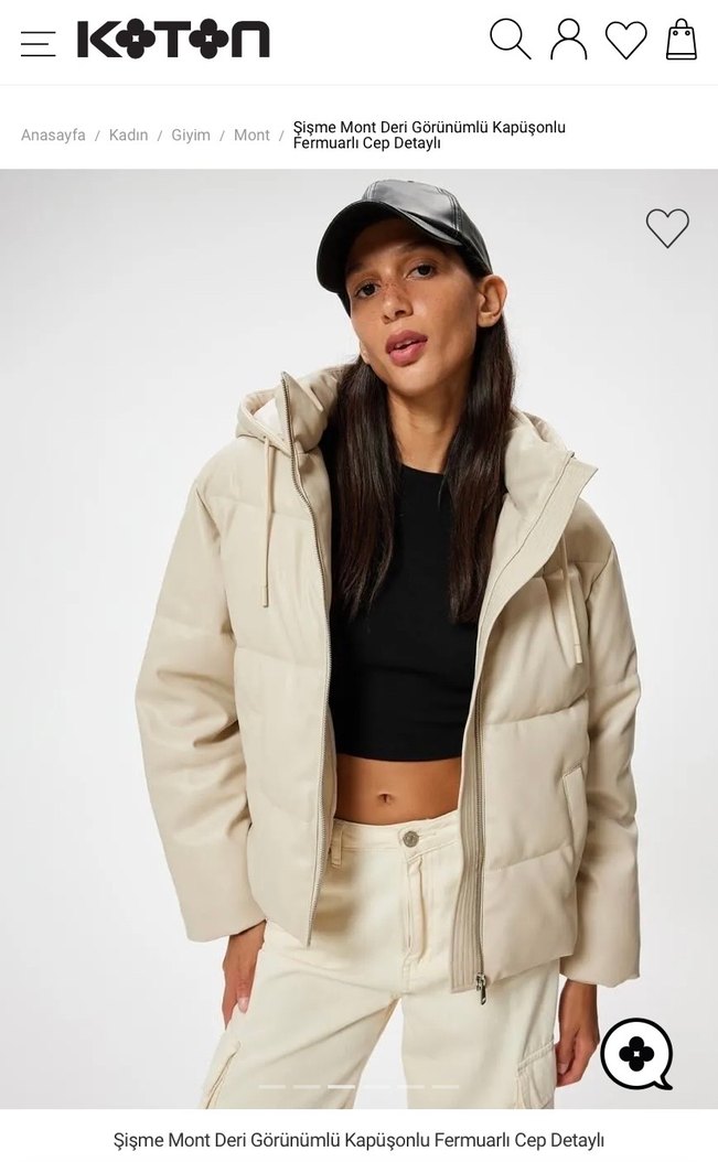 Bej deri görünümlü mont, kapüşonlu ve uzun kollu, rahat kesimlidir. Sadece bir kaç kez giydim. Hiçbir sorunu yoktur. Hurçtan çıktığı için kırışık duruyor sadece.