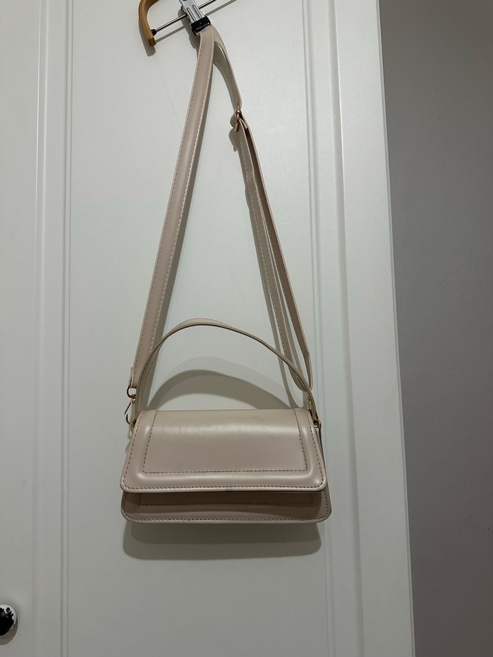 Zara model krem rengi şık çanta.