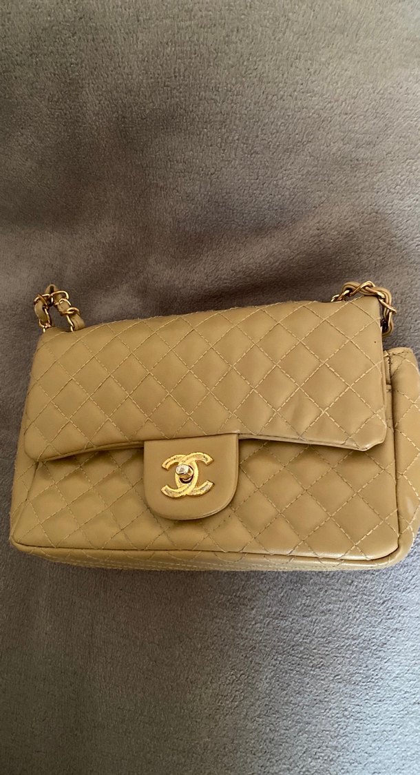 Bej deri kadın çanta, parlak yüzeyli ve tokalı kapamalı, modern klasik tarzda Paris esintili günlük kullanıma uygun. Öndeki metali hariç gayet iyi durumda. Butikten almıştım çok güzel her şeyle olabilecek bir renk ve yumuşacık