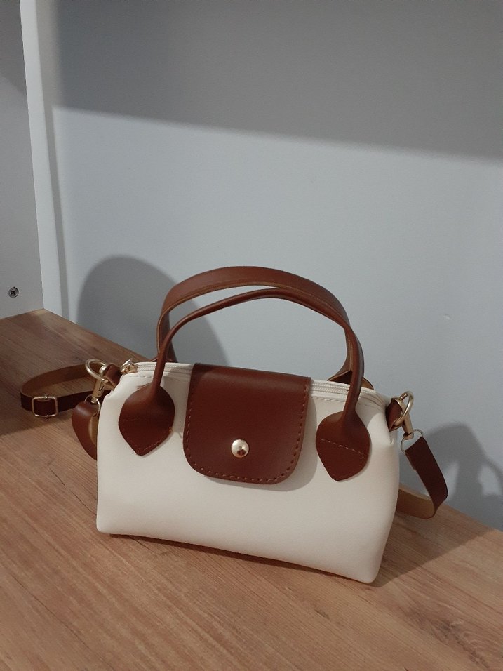 Bej renkli deri kadın çanta, minimalist ve çağdaş tasarıma sahiptir. Çift saplı ve çıkarılabilir askılı, gündelik şıklık için idealdir. Desensiz yüzeyiyle sade ve zarif görünür.