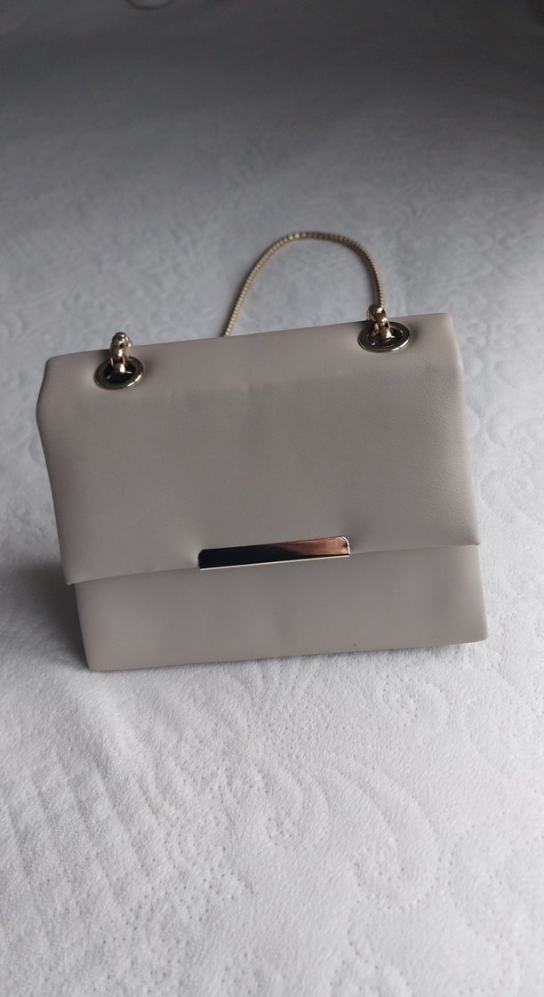 Bej deri kadın çanta, tokalı ve minimal desenli, çağdaş tarzda, günlük kullanıma uygun şık ve sade tasarıma sahiptir. Zincir saplıdır.