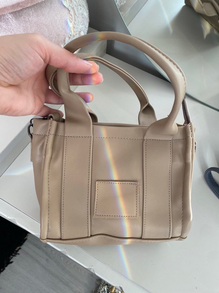 Bej renkli deri kadın çanta, fermuarlı ve desensiz tasarımıyla günlük sokak stiline uygun minimal bir modeldir.