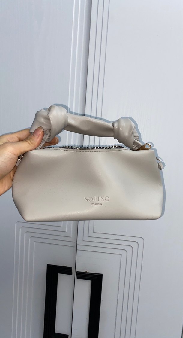 Bej deri kadın çanta, fermuarlı kapanış ve yumuşak burgu sap ile minimalist ve trend günlük kullanım için uygundur.