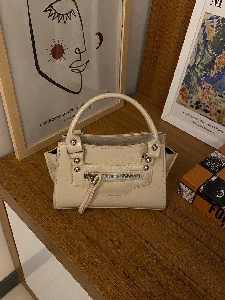 Bej deri kadın çanta, fermuarlı cepli ve minimalist tasarıma sahip. Günlük sokak stiline uygun, sade ve açık renkli. Sorunsuzdur