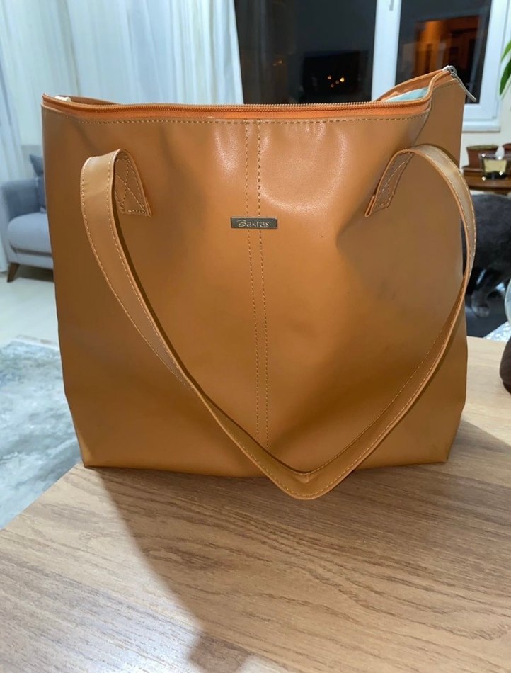 Parlak bej deri kadın çanta, fermuarlı kapama ile minimalist ve klasik zarafet sunar. Sokak stili ve günlük kullanım için uygundur.