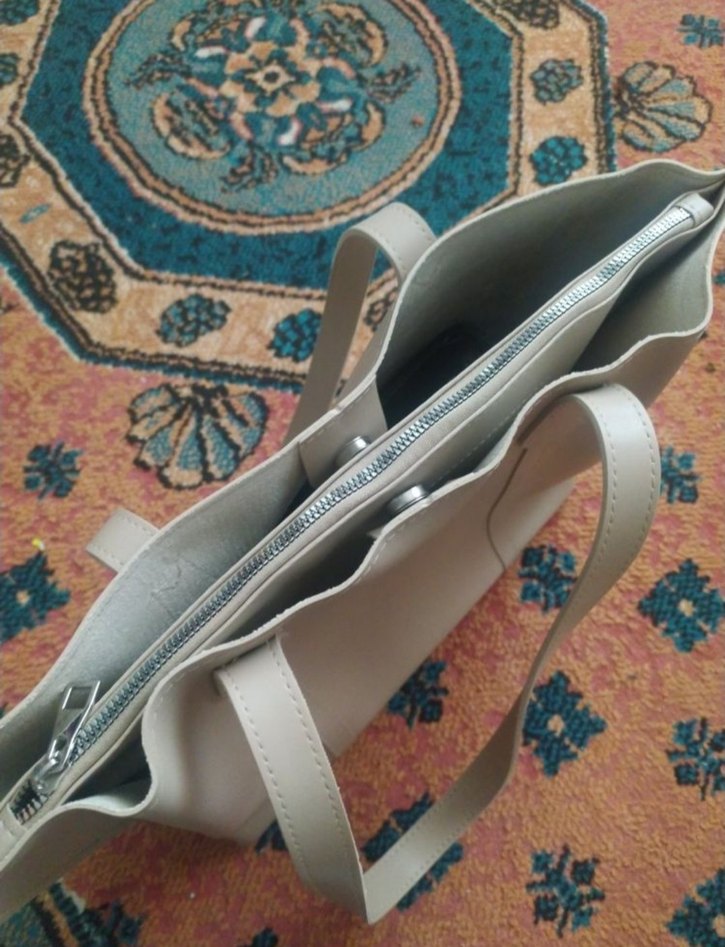 Bej Deri Kadın Çanta Fermuarlı