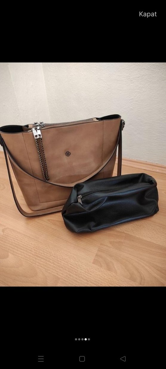 Bej Deri Kadın Çanta Fermuarlı Modern