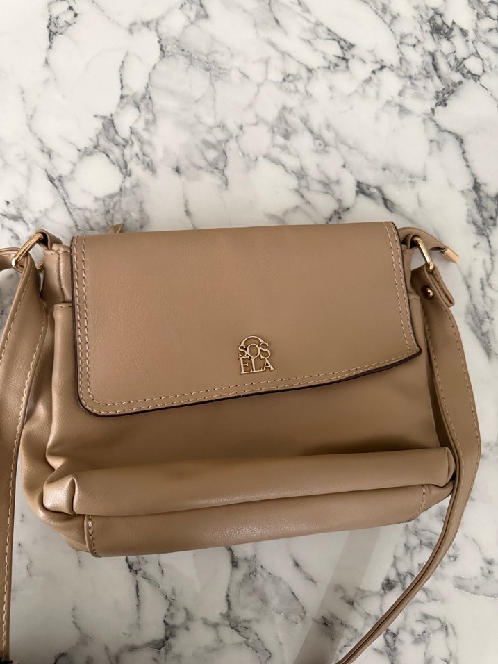 Bej renkli deri kadın çanta, tokalı kapaklı ve desensiz tasarıma sahip. Günlük kullanıma uygun modern klasik stilde. Sos ela mağazasından alındı çok yumuşak yapıya sahiptir