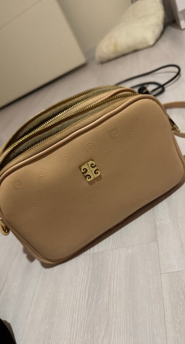 Bej renkte deri kadın çanta, baskılı deseni ve fermuarlı bölmeleri ile modern klasik ve minimalist tarzı günlük kullanıma sunar. Pierre cardin kol cantası saplarında soyulmalar mevcuttur fotoğrafta belirtildi lütfen bakıp alım yapınız  pembeye çalan ten rengi bej arası rengi var