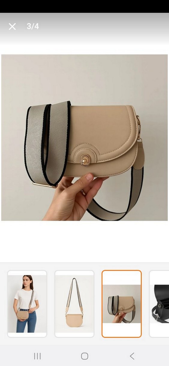 Bej deri kadın çanta, tokalı kapama ve siyah gri geniş askı ile. Desensiz tasarım, modern klasik görünüm sunar, günlük kullanım için uygundur.