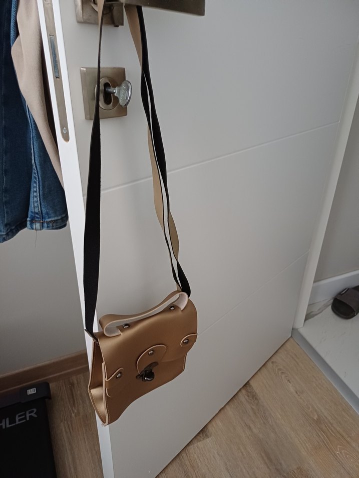 Bej renkte, deri malzemeden üretilmiş tokalı genç kız çantası, minimalist ve desensiz tasarımıyla sokak modasına uygun günlük kullanıma uygun.