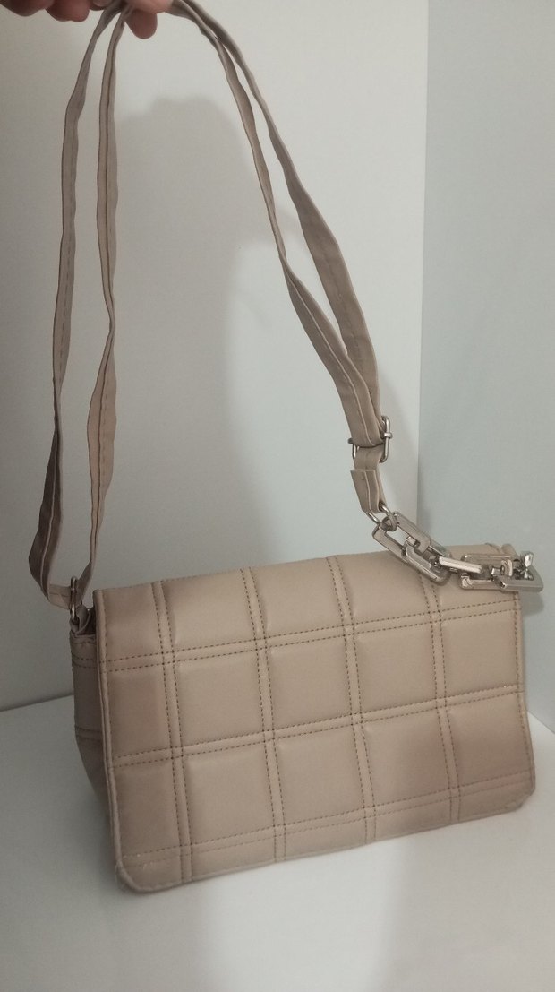 Bej Deri Kadın Çanta - Tokalı, Kareli