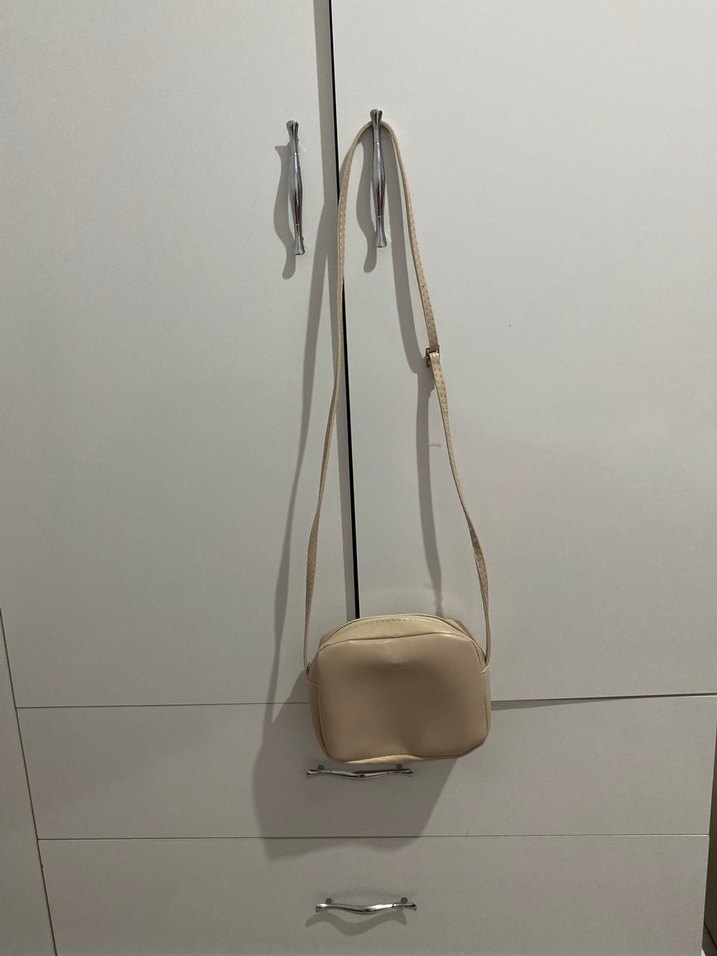 Bej deri çapraz çanta, minimalist ve desen içermeyen tasarımıyla günlük sokak stiline uygun, zahmetsiz şıklık sunar.