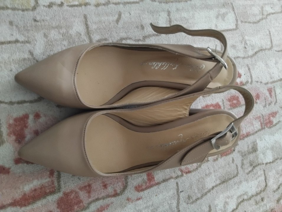 Bej deri kadın dolgu topuklu akşam ayakkabısı, tokalı ve desen içermeyen şık tasarım, düğün için uygun.
