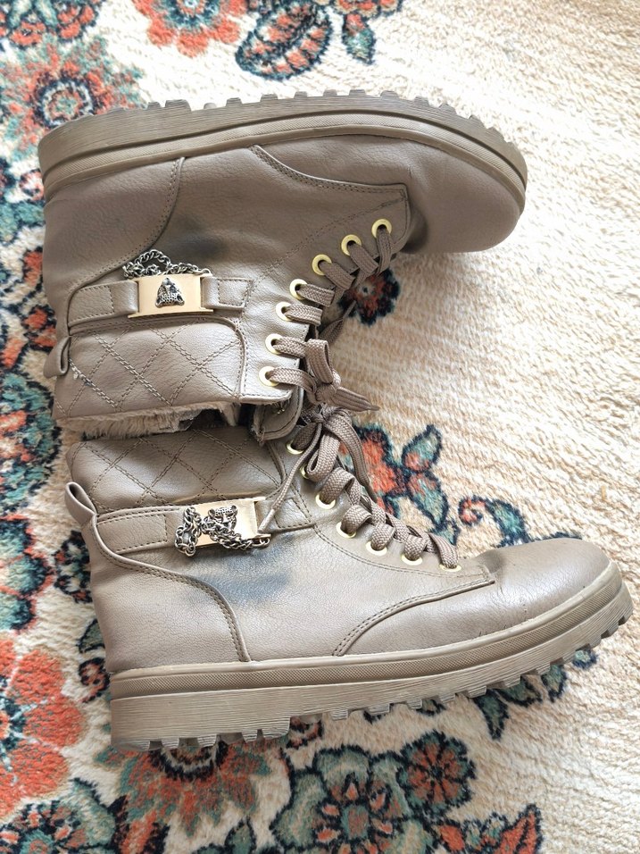 Bej deri kadın botları, dolgu topuklu ve tokalı detaylara sahip. Rahat ve trend bir tarz sunar, günlük kullanım için uygundur.