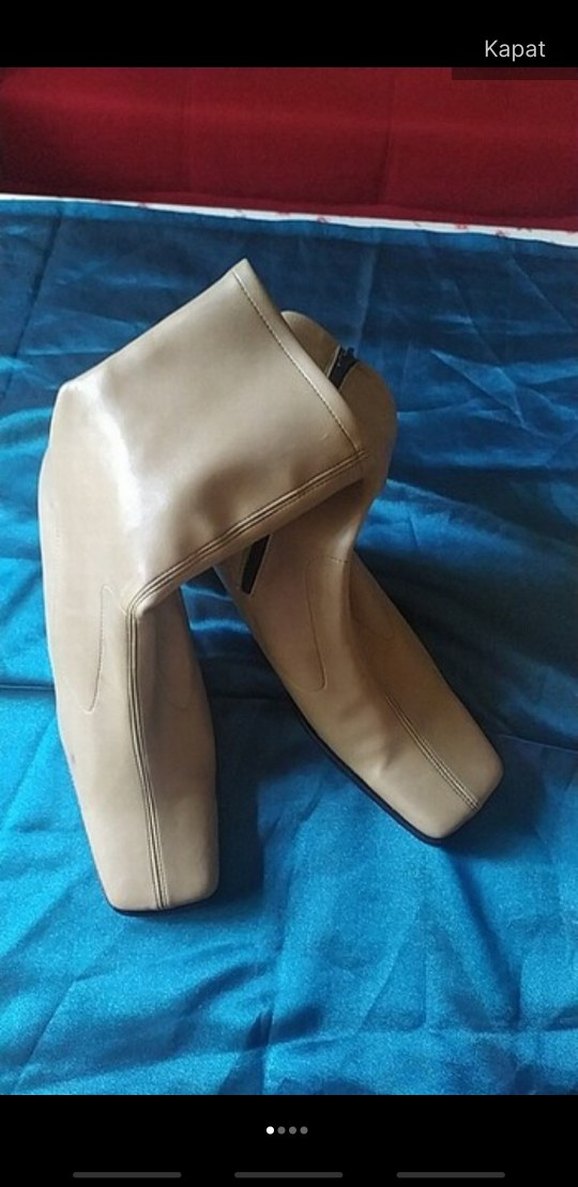 Bej deri kadın botlar, dolgu topuklu ve fermuarlı, minimalist pastel tasarımla çağdaş stile uygun.