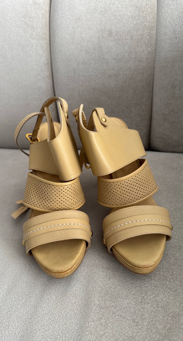 Bej Deri Kadın Dolgu Topuklu Sandalet