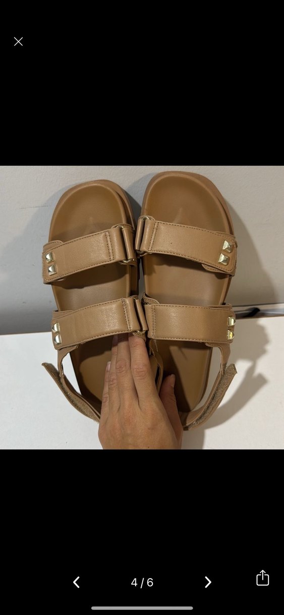 Bej deri kadın sandalet, dolgu topuklu ve tokalı bantlarla. Minimalist tasarım, günlük rahat kullanıma uygun. Sokak stili için konforlu.