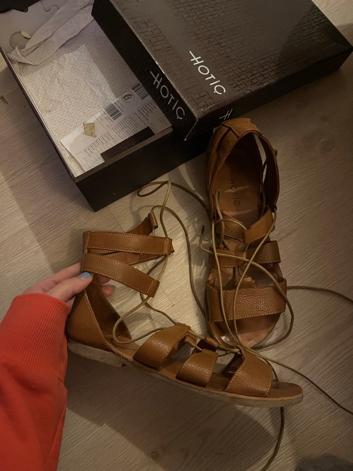 Hakiki deri kadın sandaletler. Günlük kullanım için uygun bohem tarzda, HOTIC markalıdır.