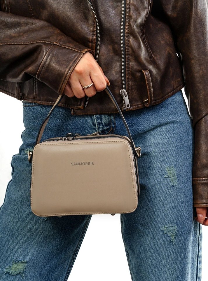 Bej renkte, fermuarlı ve desensiz tasarıma sahip deri kadın el çantası. Günlük kullanıma uygun, trendy son 1 adet marka ürünü