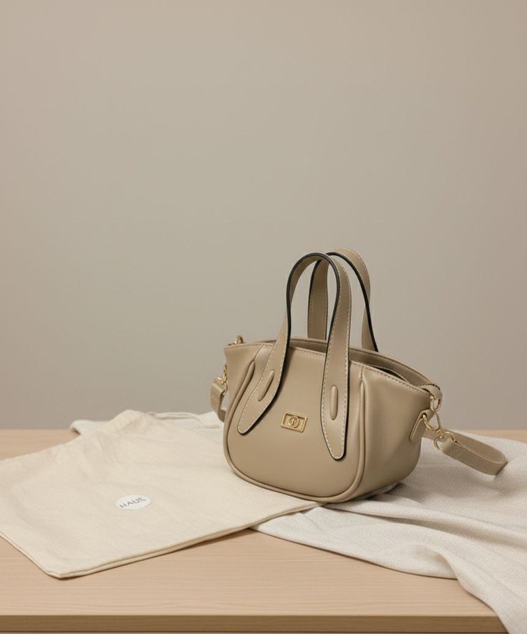 Bej deri el çantası, minimalist ve modern klasik tarzıyla dikkat çeker. Günlük kullanıma uygun, zahmetsiz şıklık sunar.