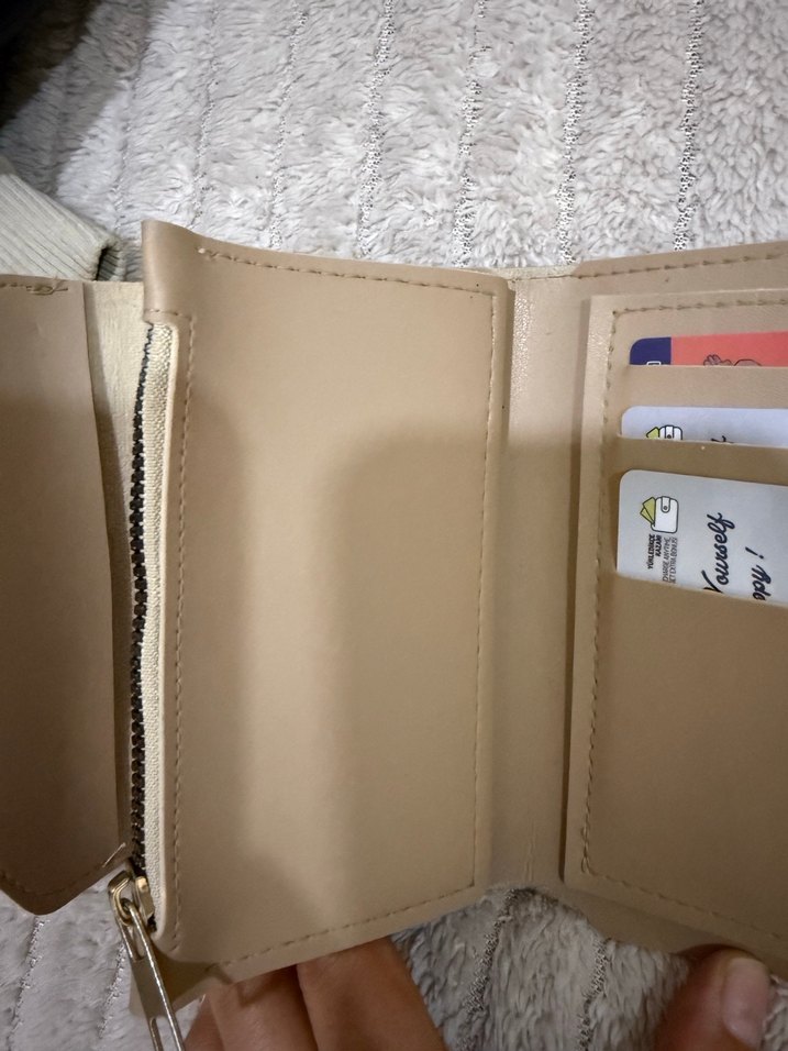 Bej deri kadın clutch cüzdan, fermuarlı bölme ve çoklu kart yuvaları ile modern ve kullanışlıdır.