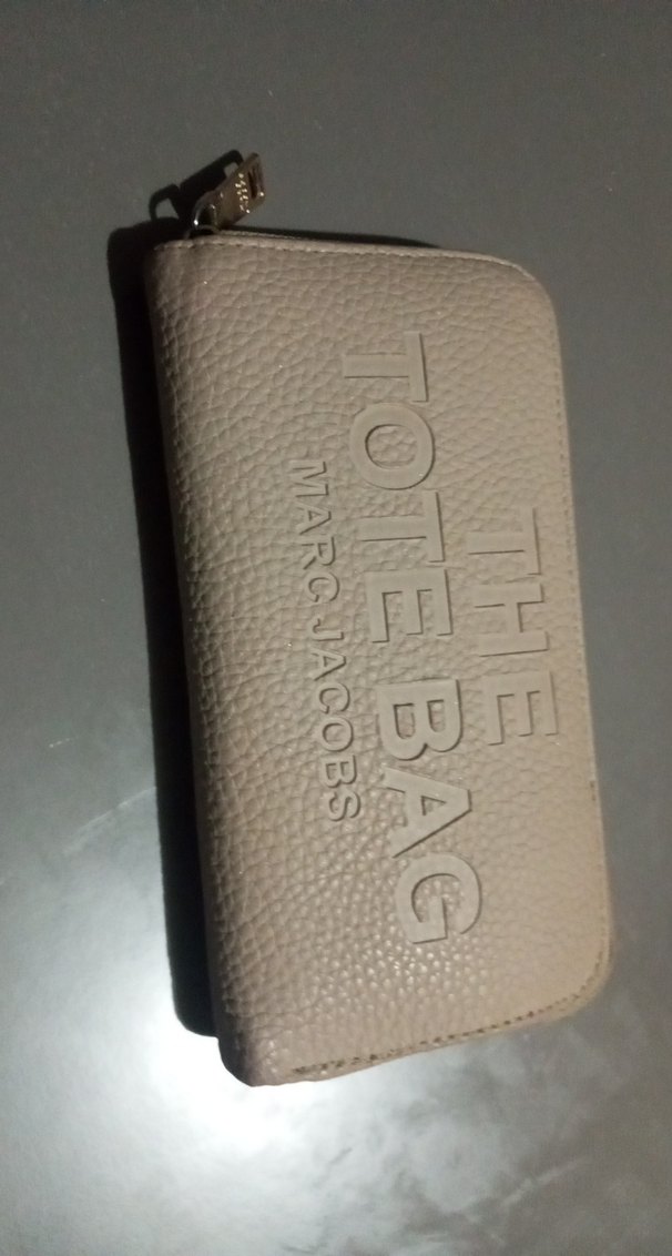 Bej deri kadın cüzdanı, fermuarlı kapama ve kabartmalı yazı detayına sahiptir. Sokak stili ve normcore tarzını birleştirir, günlük kullanıma uygundur.