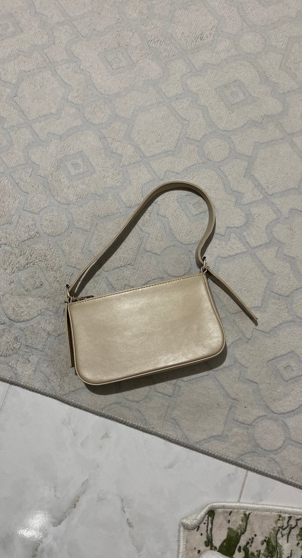 Bej renkte deri kadın çanta, tokalı askısı ve sade deseniyle günlük kullanıma uygundur.