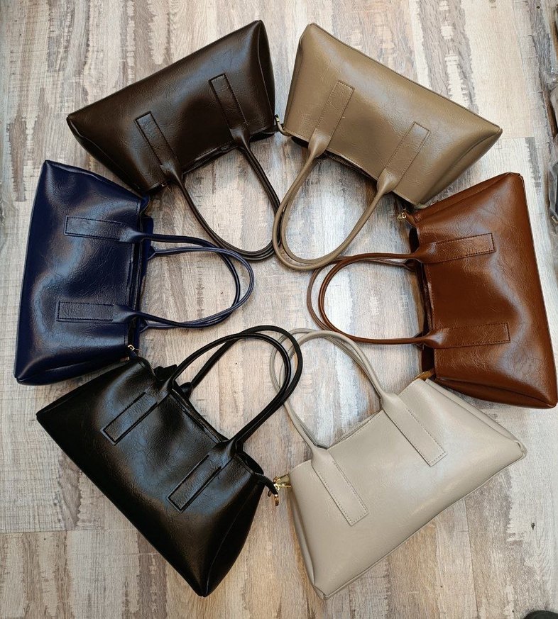 Bej deri, desensiz ve çağdaş stile sahip minimalist kadın çantası, günlük kullanım için zahmetsiz şıklık sunar.