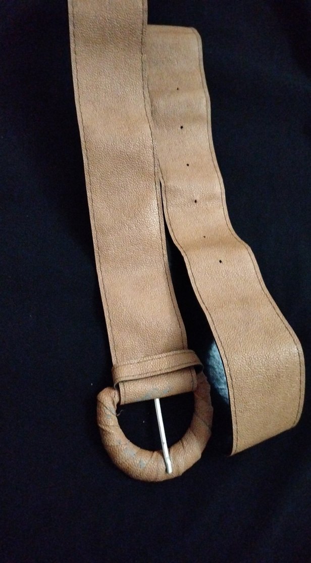 Bej deri kadın kemer, yuvarlak tokalı kemerli tasarımıyla bohem ve retro tarzı tamamlar.