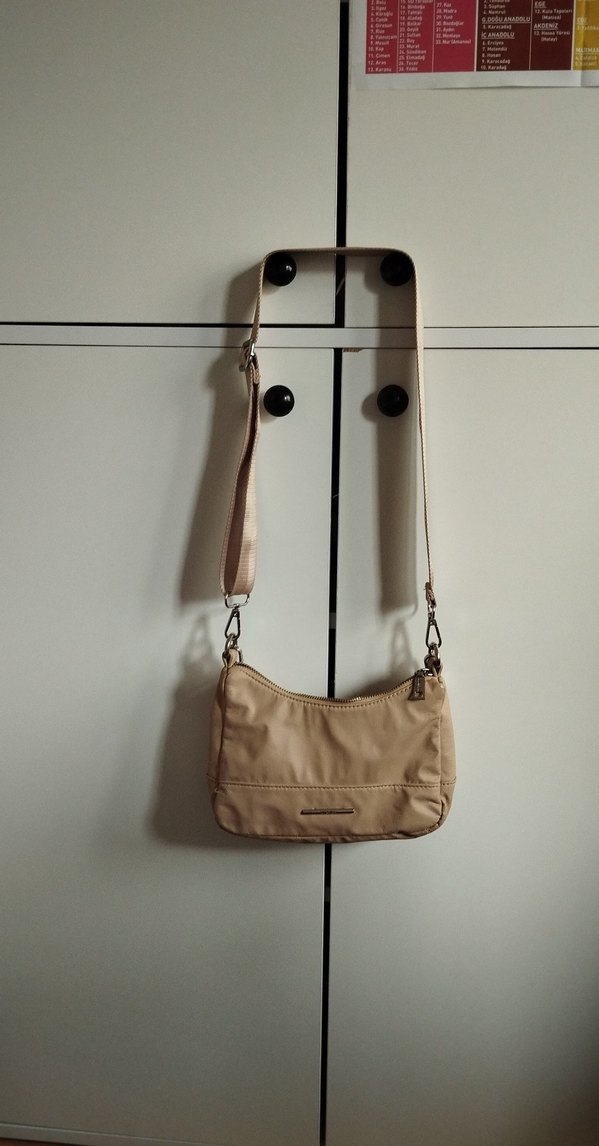 Bej renkte, tokalı askıya sahip deri kadın omuz çantası. Minimalist ve desen içermeyen tasarımıyla günlük sokak stiline uygundur. SAP KİSMİ DEGİSTİRİLEBİLİR KLİPSLİ. YİPRANMALAR MEVCUT FOTOLARDA VAR