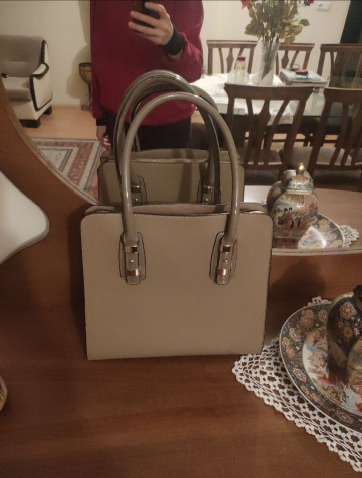 Bej deri kadın omuz çantası, tokalı sapları ve gri tonuyla Paris tarzını yansıtan desen içermeyen modern tasarım.3 gözlü, çok kullanışlı çanta modelidir.