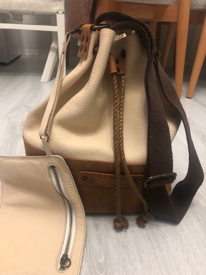 Bej deri, kemer detaylı kadın çantası, koyu renk askılı, desenli olmayan ve günlük kullanıma uygun, trend rahat tarzda. Hiç kullanılmadı. Normal fiyatı 10 binlerde mağaza kapandığı için tek kaldı
