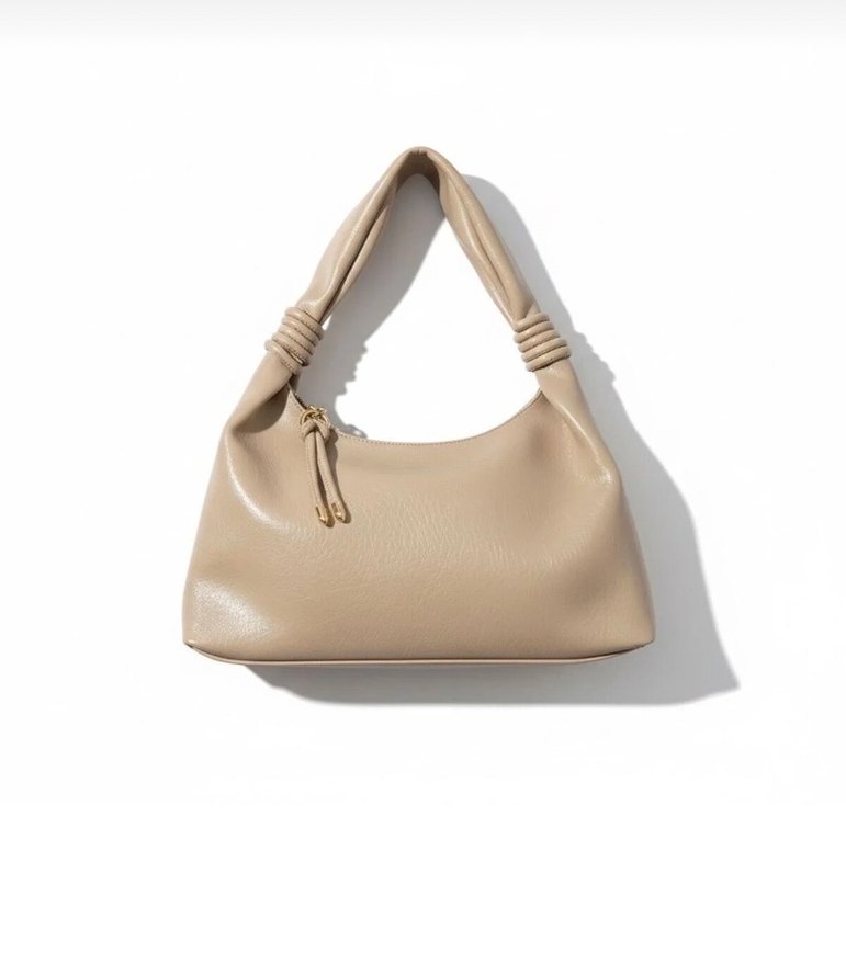 Bej renkte, kemerli tasarıma sahip minimalist deri kadın omuz çantası, günlük kullanıma uygundur ve trend casual tarzı yansıtır.