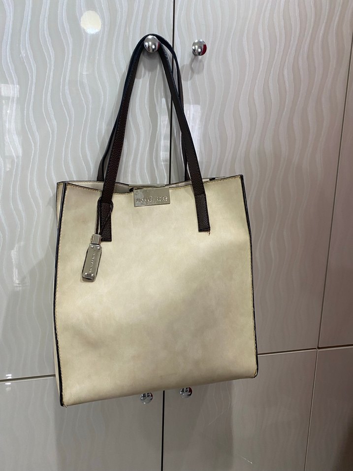 Bej deri kadın çantası, koyu renk saplar ve tokalı detay ile minimalist ve klasik şıklığı bir araya getiriyor. İhtiyaç fazlası ürün. Çantada hiç bir sorun yoktur fakat kullanıma bağlı sap kısmında deforme oluşmuştur kullanıma engel değildir çanta sapı değiştiriledebilir