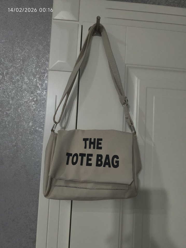 Bej deri kadın omuz çantası, baskılı desen ve fermuarlı kapanışa sahip. Ayarlanabilir askısıyla kullanışlıdır.