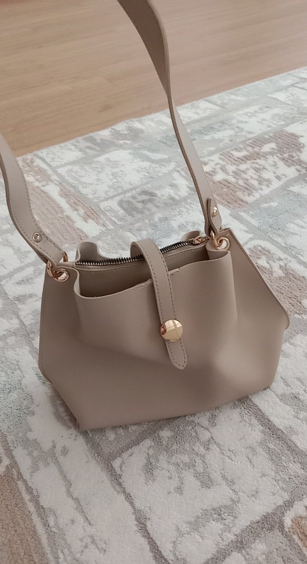Bej Deri Kadın Omuz Çantası