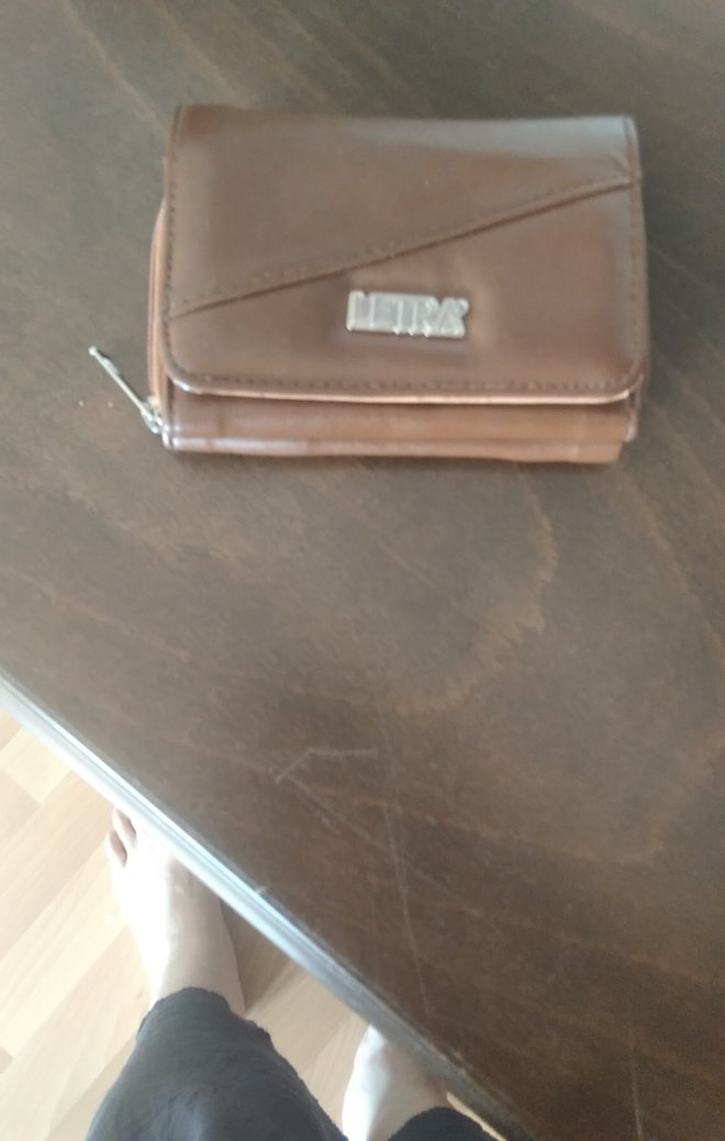 Bej renkli deri portföy cüzdan, fermuarlı ve mat yüzeye sahip. Minimalist ve çağdaş tasarımla günlük kullanıma uygun.