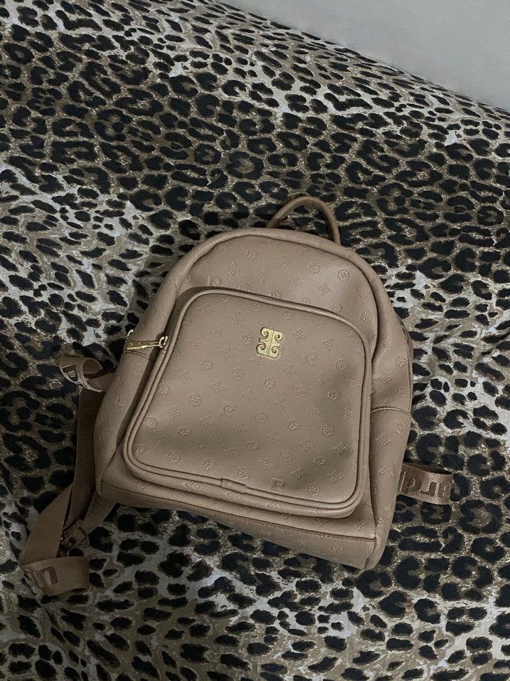 Bej renkli deri kadın sırt çantası, tokalı tasarımı ve Paris esintili yılan desenli modeliyle trend sokak stiline uygun.