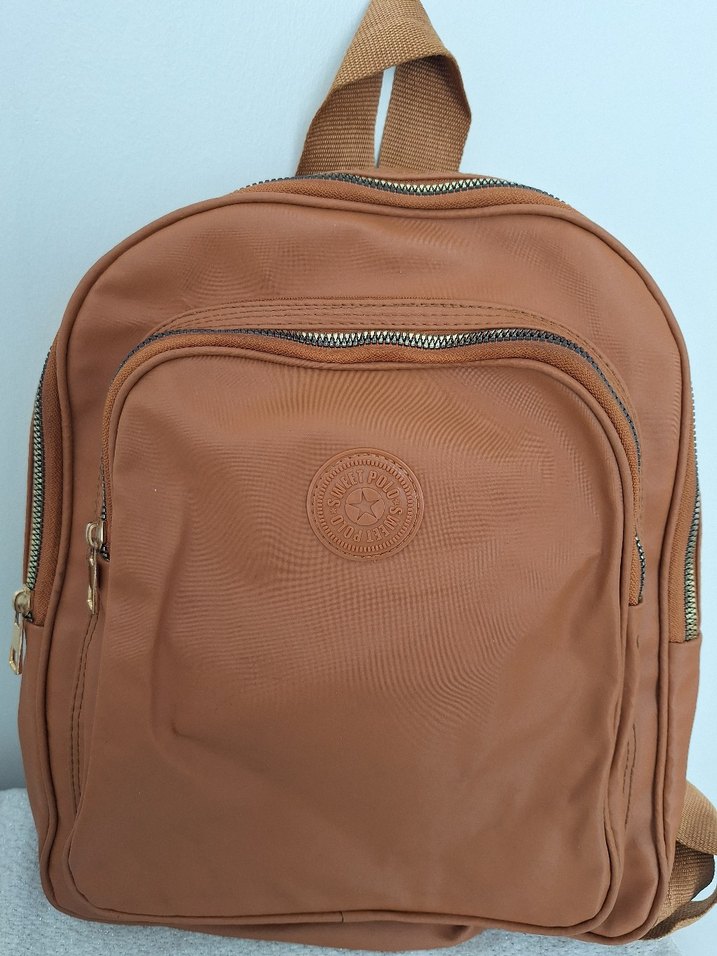 Bej renkli,kadın sırt çantası, fermuarlı bölmelere sahip. Minimalist ve desensiz tasarımıyla trend sokak stiline uygun.