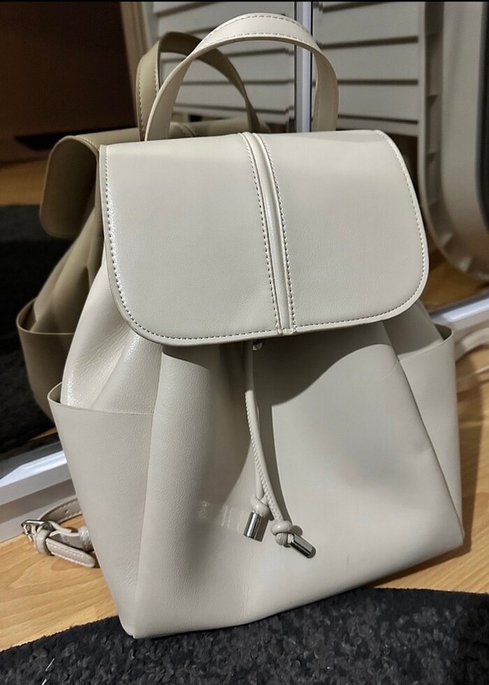 Bej renkte deri sırt çantası.Normalde sorun olabilecek yerleri fotoğraflarda göstermeye çalıştım