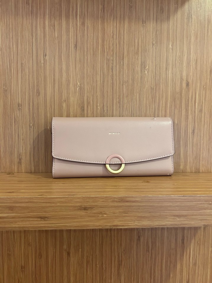 Bej renkte, tokalı kapamalı deri kadın cüzdanı, minimalist ve modern klasik tasarıma sahiptir. Günlük kullanıma uygundur. #cüzdan #pudra #aksesuar #çanta #bej #miniso #kartlık
