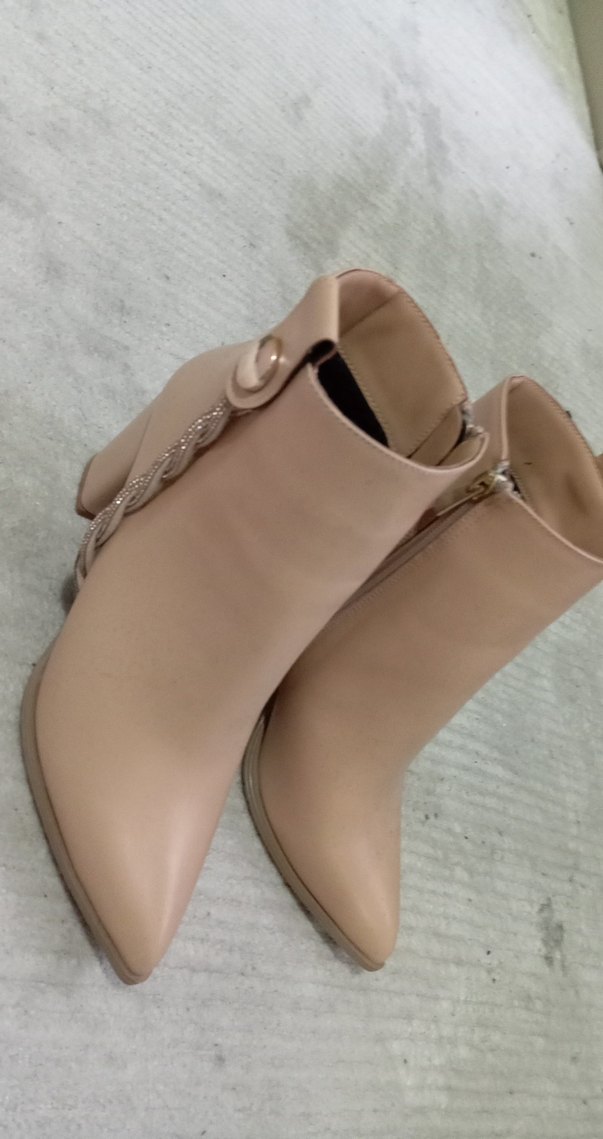 Bej deri kadın botlar, blok topuklu ve tokalı detaylı, günlük kullanım için minimal ve şık tasarım.