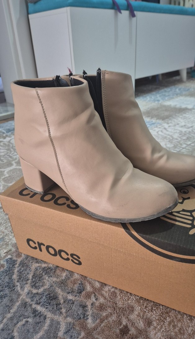 Bej renkte, deri malzemeden kadın topuklu bot. butigo markalı, yandan fermuarlı ve desen içermeyen bu botlar günlük kullanıma uygundur. sağ topuköüzerinde deri kksmında çzik var fotoda görünüyor...