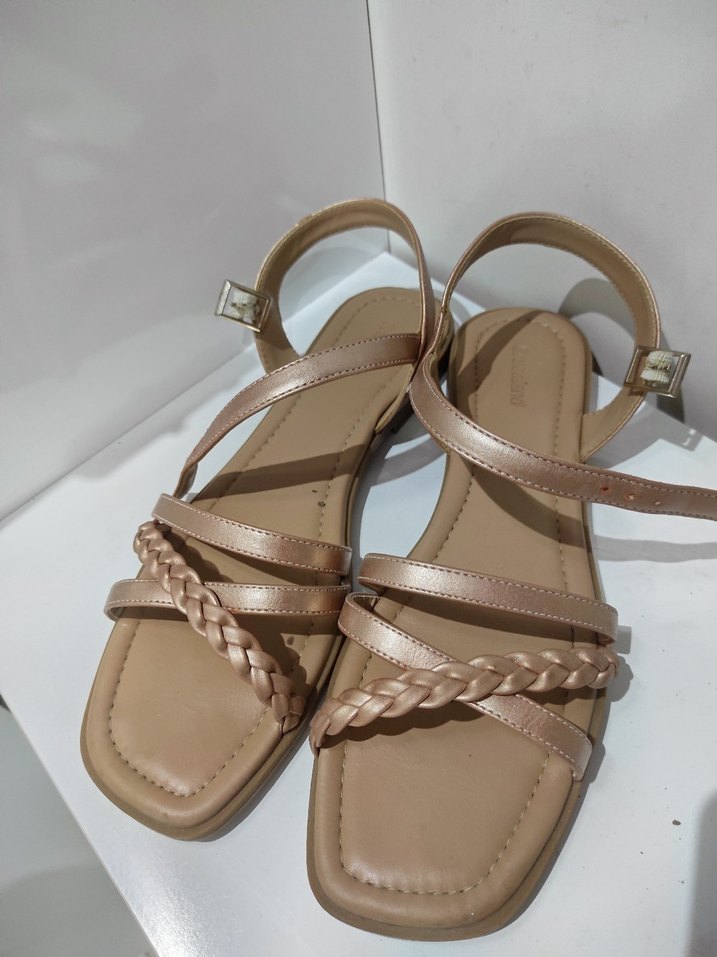 Bej deri kadın sandalet, topuklu ve tokalı kayışlara sahip. Minimalist bohem tarzıyla günlük rahat kullanıma uygun. 39 no ama ben 37 giyiyorum bana tam oluyor dar kalıp