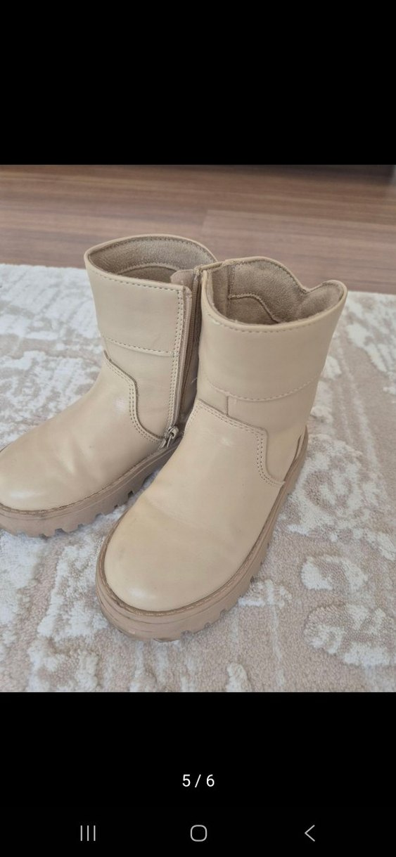 Bej renkli deri kız botları, sade ve desensiz tasarıma sahiptir. Yan fermuarı ile normcore stilinde, zahmetsiz şıklık sunar. göründüğü gibidir.