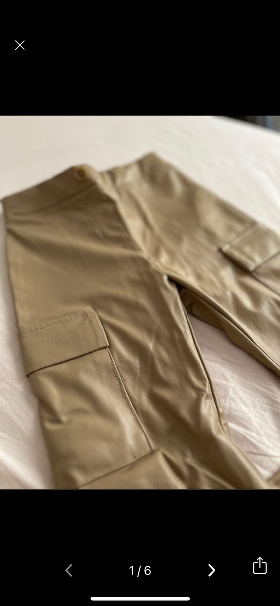 Bej deri,Parlak yüzeyli, sokak stiline uygun, kargo cepli, günlük kullanıma uygun bir model. Kız çocuk deri pantolon LCW marka. 3-4 yaş tertemiz sorunsuz