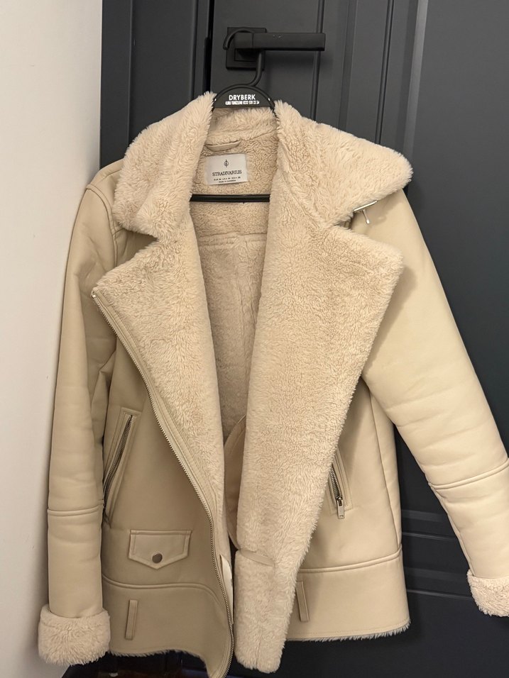 Bej Deri Kürklü Stradivarius mont kaban ceket