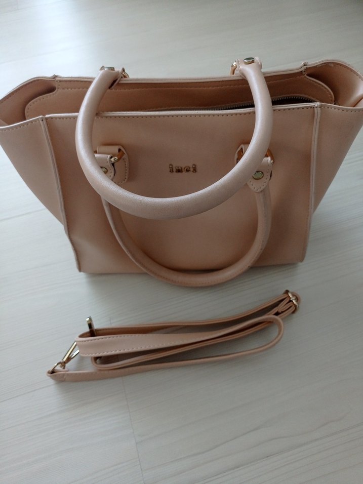 Bej deri, tokalı detaylara sahip minimalist ve çağdaş tasarımda kadın çantası. Çıkarılabilir askısı ile farklı taşıma seçenekleri sunar. Günlük kullanım için uygundur.