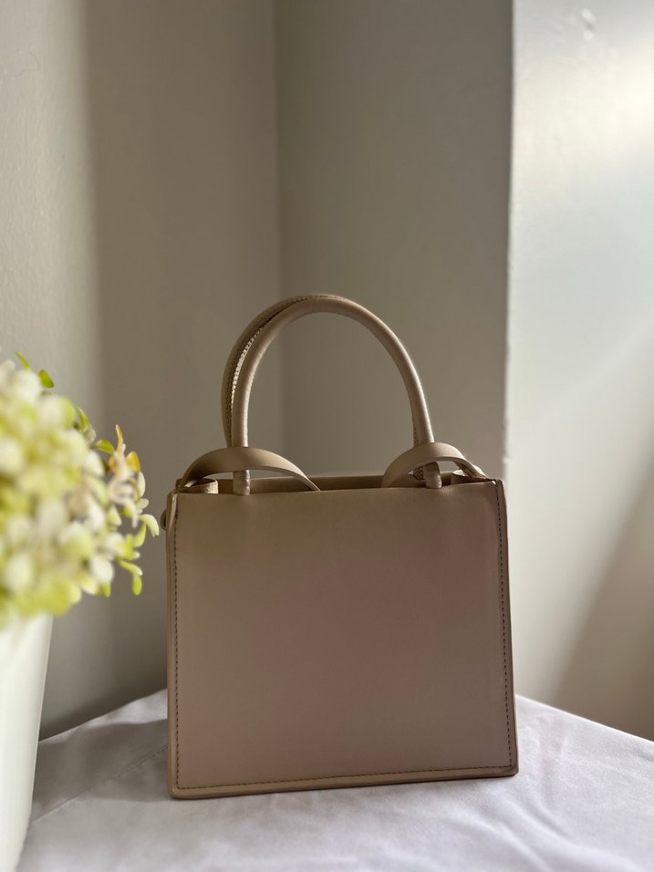 Bej deri kadın çanta, minimalist ve desensiz tasarıma sahiptir. Günlük kullanım için uygun, çağdaş ve klasik şıklık sunar.